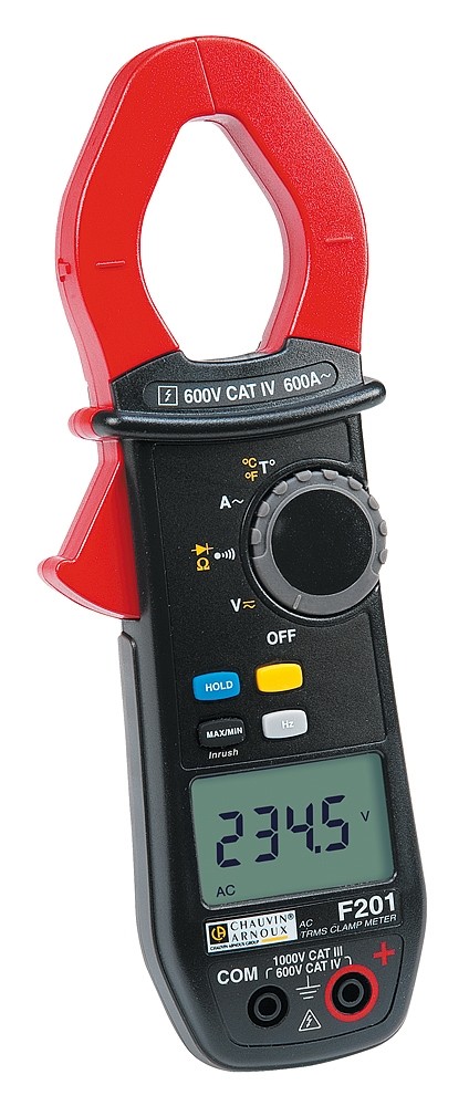 Die Vielfachmesszange F201 erfüllt alle Erwartungen des Elektrohandwerks, sowie von Klein- und Mittelbetrieben der Elektrobranche. Die Messungen der F201 erfolgen mit einem schnellen 12-Bit-TRMS-A/D-Wandler und bieten hohe Genauigkeit unabhängig von der Signalform.