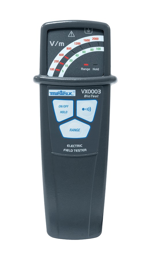 Prüfer für niederfrequente elektrische Felder (0 -3 kHz) zur Anzeige des durch das Stromversorgungsnetz erzeugten Elektrosmogs. BIOTEST