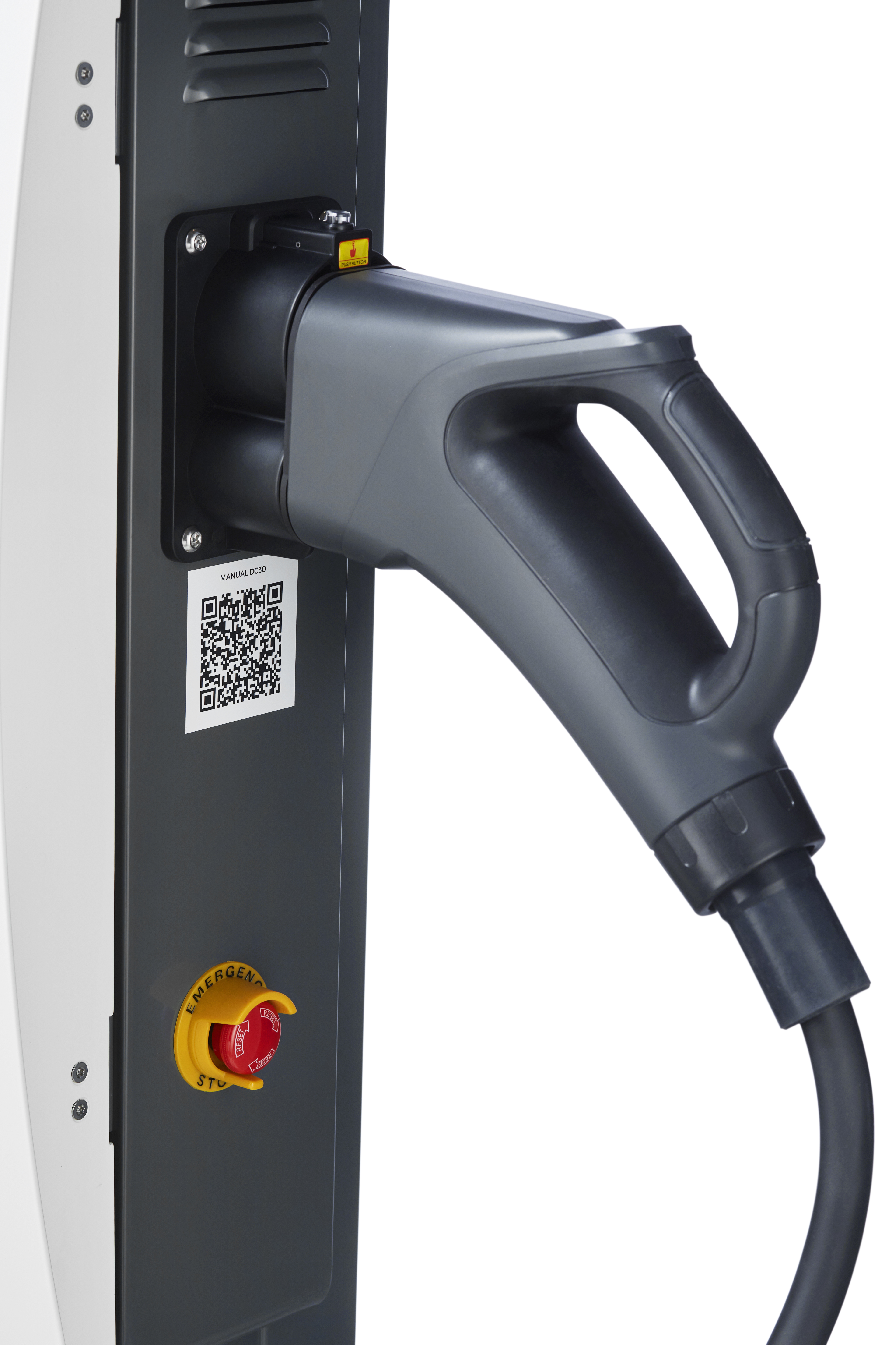 Das Ecotap® DC 30 Schnellladegerät kann für alle Elektrofahrzeuge verwendet werden. Das Ladegerät hat eine Gleichstromleistung von bis zu 30 kW. Die tatsächliche Ladekapazität hängt von der verfügbaren Leistung ab, maximal 3x 45 Ampere erforderlich (einstellbar von 10A bis 45A)