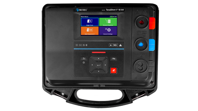 Der MI 3211 TeraOhmHP 10 kV ist ein tragbares, batterie- oder netzbetriebenes Hochleistungsprüfgerät mit ausgezeichnetem IP-Schutz (IP65), das für die Analyse des Isolationswiderstands unter Verwendung hoher DC-Prüfspannungen von bis zu 10 kV entwickelt wurde. Aufgrund seiner Robustheit (Messkategorie CAT IV) und seiner hohen Störfestigkeit gegenüber abgestrahlten EM-Feldern ist es am besten für anspruchsvolle Industrieumgebungen geeignet. Die Touchscreen- oder Tastenmanipulation über ein menügesteuertes LCD ermöglicht eine einfache und transparente Auswahl verschiedener Messmethoden und eine einfache Dateneingabe. Neu entwickelte Prüfleitungen verfügen über codierte Bananenstecker für den ordnungsgemäßen Anschluss und die Verriegelung, um sie vor unerwünschtem oder versehentlichem Entfernen zu schützen.