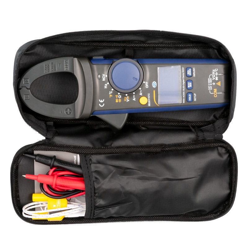 Die Stromzange PCE-OCM 10 zeichnet sich durch die OLED Anzeige aus. Das OLED Display bei dieser Stromzange ermöglicht es, dass das Display selbst im Dunklen gelesen werden kann, da dieses selbstleuchtend ist. Die Stromzange misst Gleich- und Wechselstrom bis 600 A. Neben der regulären Strommessung kann die Stromzange PCE-OCM 10 zur Messung von Anlaufströmen verwendet werden. Wechselspannung ist bis 750 V AC messbar und Gleichspannung sogar bis 1000 V. Weiterhin verfügt die Stromzange über die standardmäßigen Multimeterfunktionen wie Widerderstandsmessung, Diodenprüfung, Kapazitätsmessung, Durchgangsprüfung usw. Ebenfalls kann die Stromzange zur Temperaturmessung mit Hilfe des externen Thermoelementes genutzt werden.