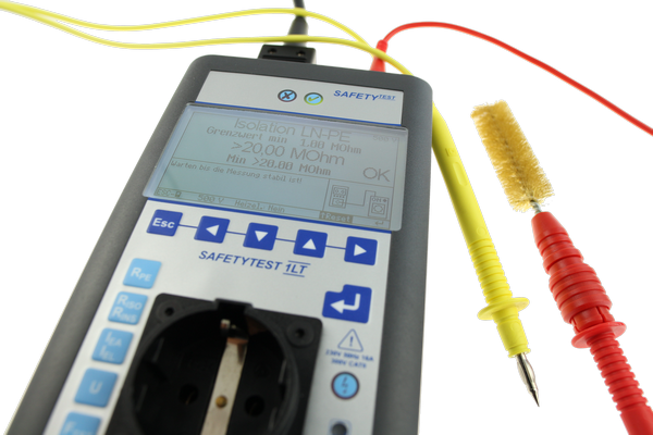 Prüfgerät zur sicherheitstechnischen Überprüfung von Wechselstromverbrauchern nach DIN VDE 0701-0702, EN 60974-4 (DIN VDE 0544-4)und EN 62353 (DIN VDE 0751) mit DC-Ableitstrommessung.Prüfungen nach DGUV Vorschrift 3 (Alt: BGV A3).DIN VDE 0701-0702, DIN EN 60974-4 (DIN VDE 0544-4) Schweißgeräte und DIN EN 62353 (DIN VDE 0751) Medizin-GeräteAnschlüsse: CEE32 5P, CEE16 5P, CEE16 3P, Buchse und Stecker IP 67 geeignet, Schuko, KaltgerätesteckerQWERTZ-Tastaturgroßes kontrastreiches DisplayTest von Verlängerungsleitungen, optional mit RCD Typ A/B (Baustromverteiler), PRCD, PRCD-S, PRCD-S Plus und PRCD-Kautomatischer Prüfablauf, Klartextbedienung und grün/rot-LED-Anzeige für OK/Fehlerschnellerer Ablauf aller aktiven Prüfungen inklusive Funktionstest mit echt-effektiv-Leistungsanzeige in nur einem PrüfschrittÜberprüfung des Netzanschlusses auf PE-Anschluss und automatische Abschaltung bei gefährlichem Fehlerstrom des PrüflingsDatenspeicher für 100.000 MessungenIdentnummereingabe über: QWERTZ-Tastatur, Barcodescanner, 2D QR-Codescanner, Transponderscannerbidirektionaler Datenaustausch zwischen Gerät oder PC mit USB-Stick oder über USB-Kabel möglich.Steuerung des Messgerätes (Remote Betrieb): Windows PC / Tablet mit der Software SafetyRemote, Android Tablet mit der Test-Master AppMessung von Ableitströmen im Differenzstrommessverfahren DC, AC und direkte Schutzleiterstrommessung DC, AC oder DC Differenzstromzange (nur für Neugeräte, nicht nachrüstbar)