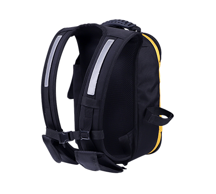 Mit den breiten, gepolsterten, belüfteten und verstellbaren Schultergurten und dem geformten Griff an der Oberseite des Rucksacks lässt sich die Ortungsausrüstung bequem transportieren. Das gepolsterte, belüftete Rückenteil sorgt für zusätzlichen Komfort beim Tragen des Rucksacks. An jedem Schultergurt befindet sich eine drei Zoll tiefe und eindreiviertel mal ein Zoll große Tasche für alltägliches Werkzeug wie Steckschlüssel, Schraubenzieher oder ein Mini-Multitool.